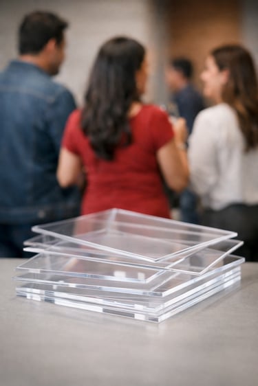 El acrílico es uno de los materiales más utilizados en proyectos comerciales porque tiene buena presentación, resistencia visual, versatilidad y un acabado limpio. Es ideal para negocios que buscan fabricar piezas ligeras, modernas y con una apariencia profesional.